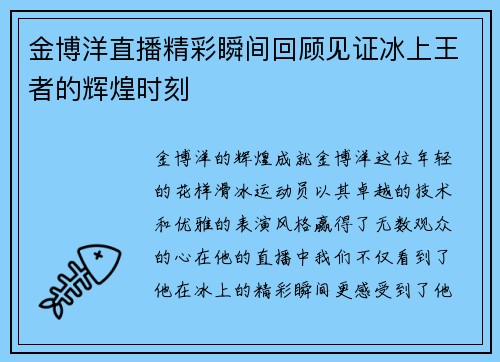 通过金博洋的直播,我们不仅回顾了他在冰上的辉煌时刻,也感受到了他对花样滑冰的热爱与执着。他的每一次表演都展现了无与伦比的技术和艺术,成为了无数观众心中的冰上王者。金博洋的成就不仅是个人的荣耀,更是中国花样滑冰发展的缩影。